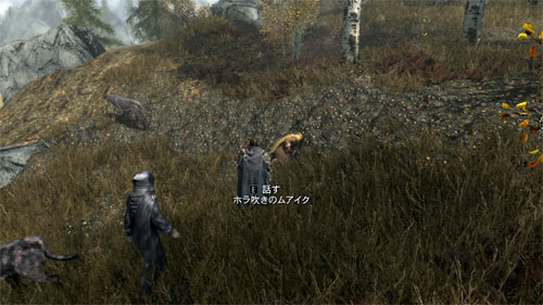 声の主を探すとカジートが膝をついている。どうやらこの近くで、オオカミと妙なウィザードに襲われたというのだ。