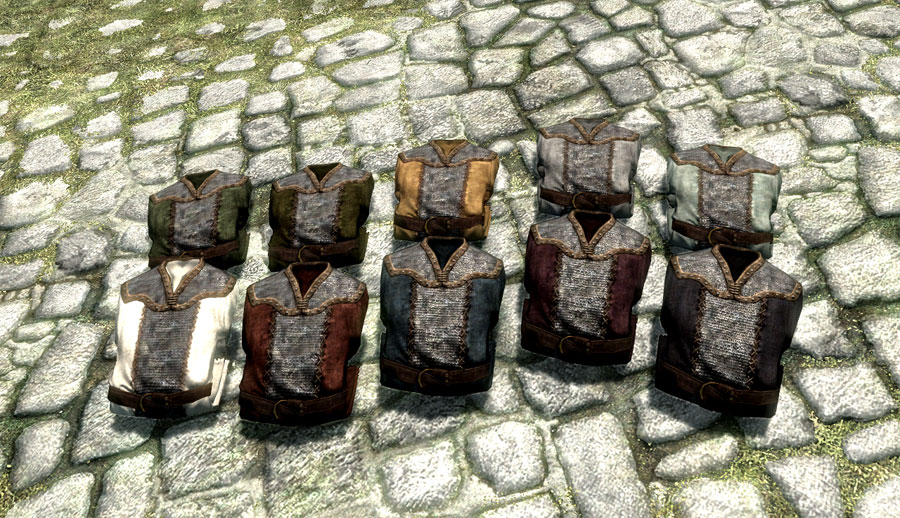 「衛兵の服」は名前が紛らわしいですが、衛兵などNPCが装備することはありません。単純な装備追加Modです。内勤の衛兵に着せようかとも思っていたんですが、Actorデータをいじらなきゃいけなかったのでやめました。無難なデザインでカラーバリエーションが豊富って、ちょっとユニクロっぽいかも。