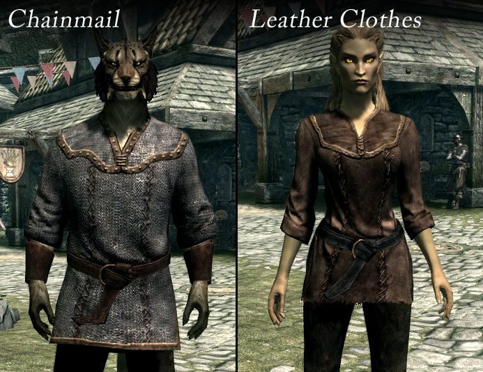 ホワイトランの雑貨屋:衛兵の服と軽装服の白のみ、皮の服、チェインメイル(ランダム)