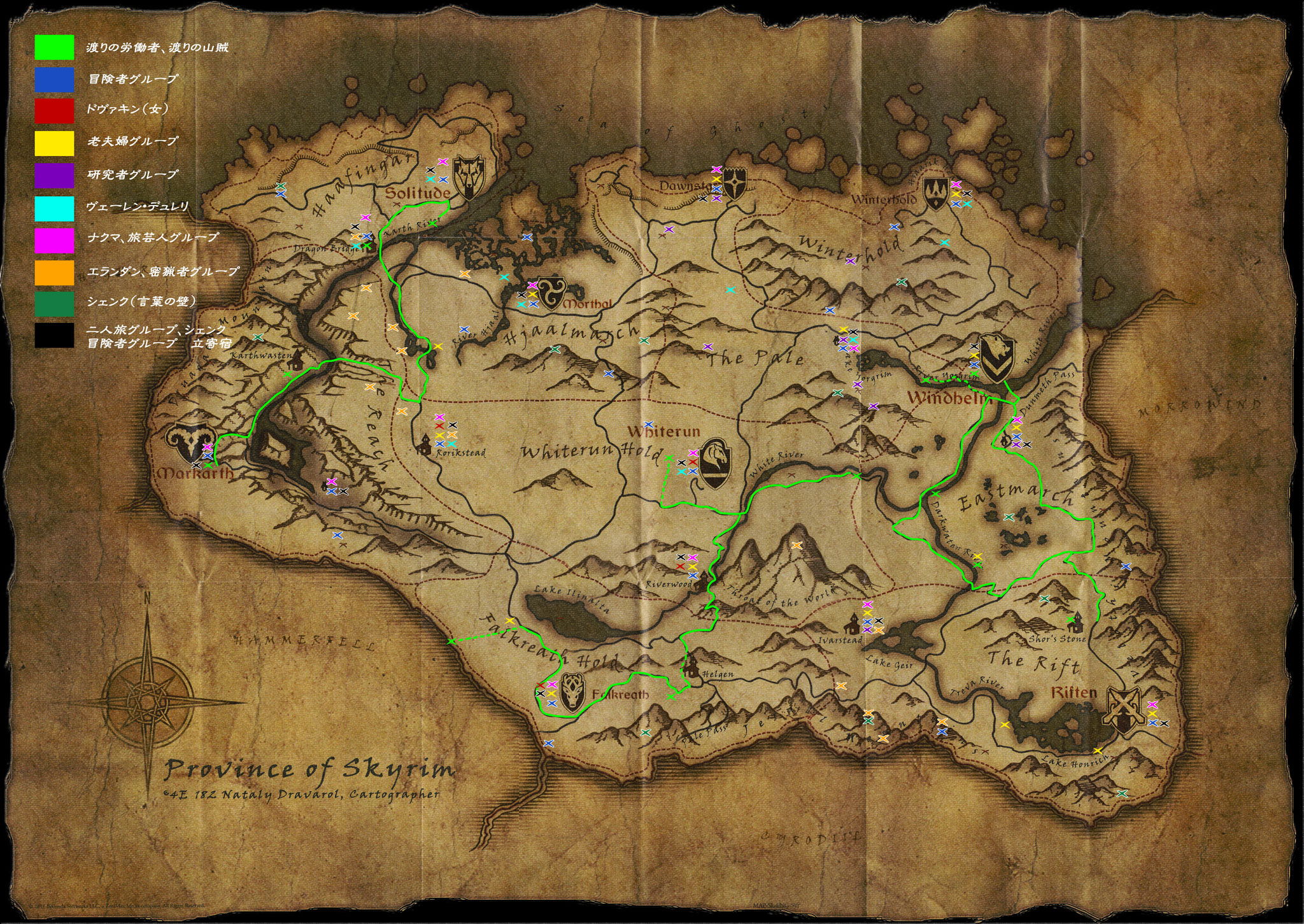 若干偏りはありますが、ほぼスカイリム全域をうろうろします。