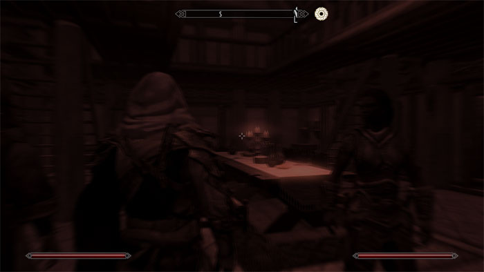 こちらは空腹と疲労がMaxになった状態の、レイクビュー邸メインホール。空腹と疲労の視覚効果が重なって、非常に見にくいです。