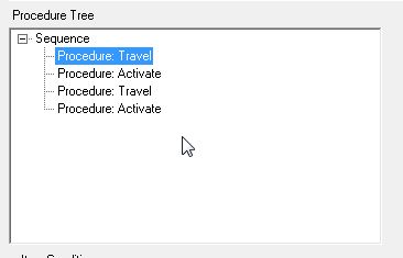 "Procedure: Travel"がTreeの一番下に挿入されるので、これを"Procedure: Activate"の上に持っていきます。