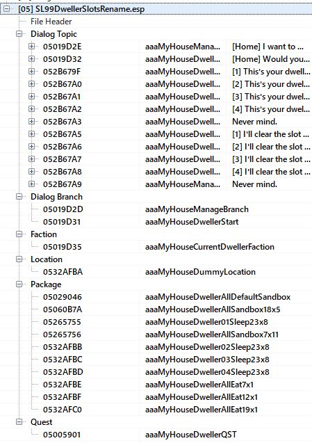 ここまで出来たら、居候Mod由来の全データのEditor IDを、自分独自のものにリネームするようにしてください。全てのEditor IDは「SL99DS」という接頭辞で始まってるので、それを検索して一括置換できます。